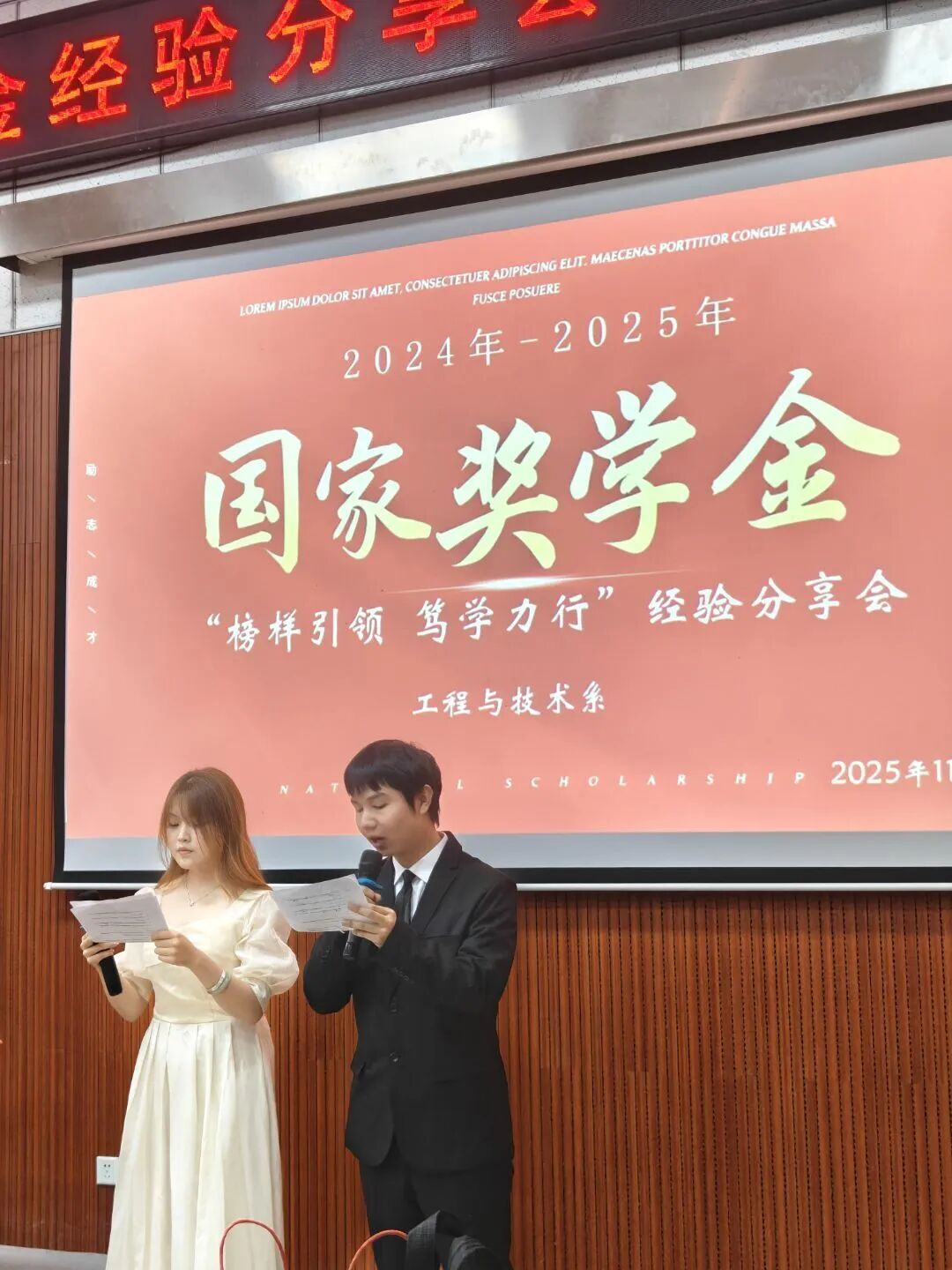 高光时刻定格!高晨老师与耿书记为我系国家奖学金获奖学子颁奖,手中荣誉证书是对他们勤奋治学、全面发展的最高肯定。愿获奖同学永葆初心,也盼全体学子以榜样为帆,在求学路上乘风破浪!