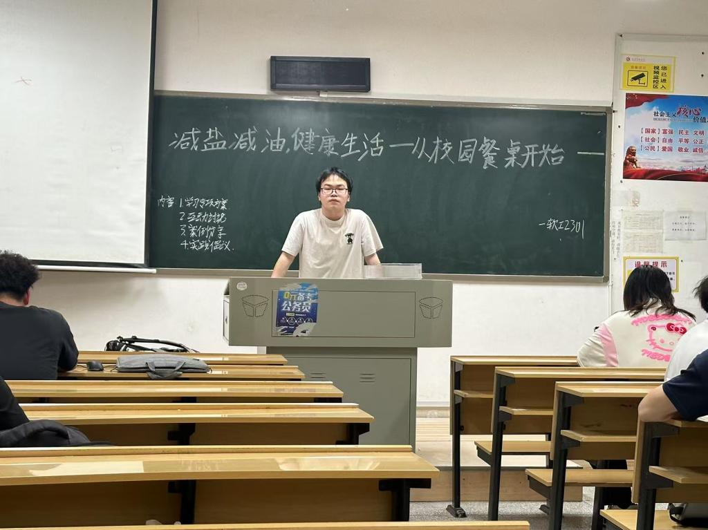 最后,班会在班委的组织下,圆满结束。此次班会全面推进“减盐减油”健康行动,提升同学们健康素养。通过倡导“减盐减油”健康生活方式,营造浓厚的“减盐减油,健康生活”宣传氛围,使“减盐减油”成为同学们的生活习惯。