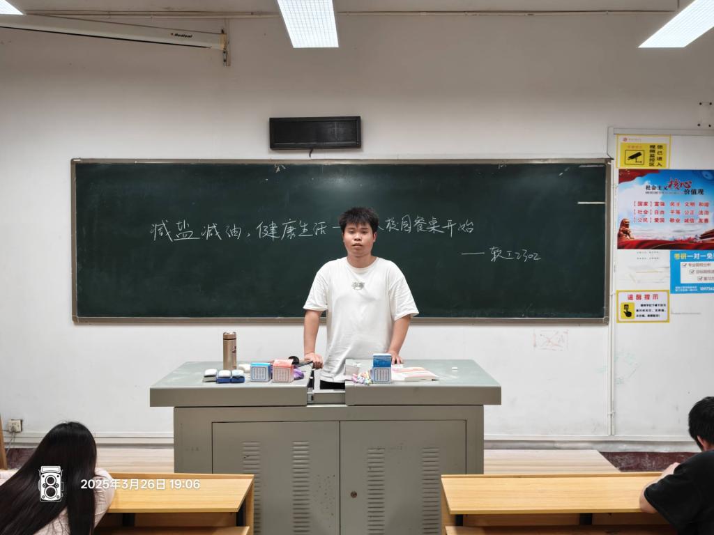 为积极响应常德市卫生健康委员会与市委宣传部联合发起的“减盐减油”专项行动,普及健康生活方式,增强大学生健康素养,我系于3月27日在各班自习室开展了以″减盐减油,健康生活″为主题的班会活动