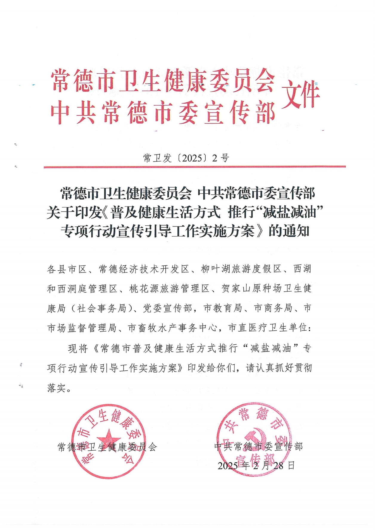 班会第一项:学习关于印发《普及健康生活方式推行“减盐减油”专项行动宣传引导工作实施方案》的通知(附件)。