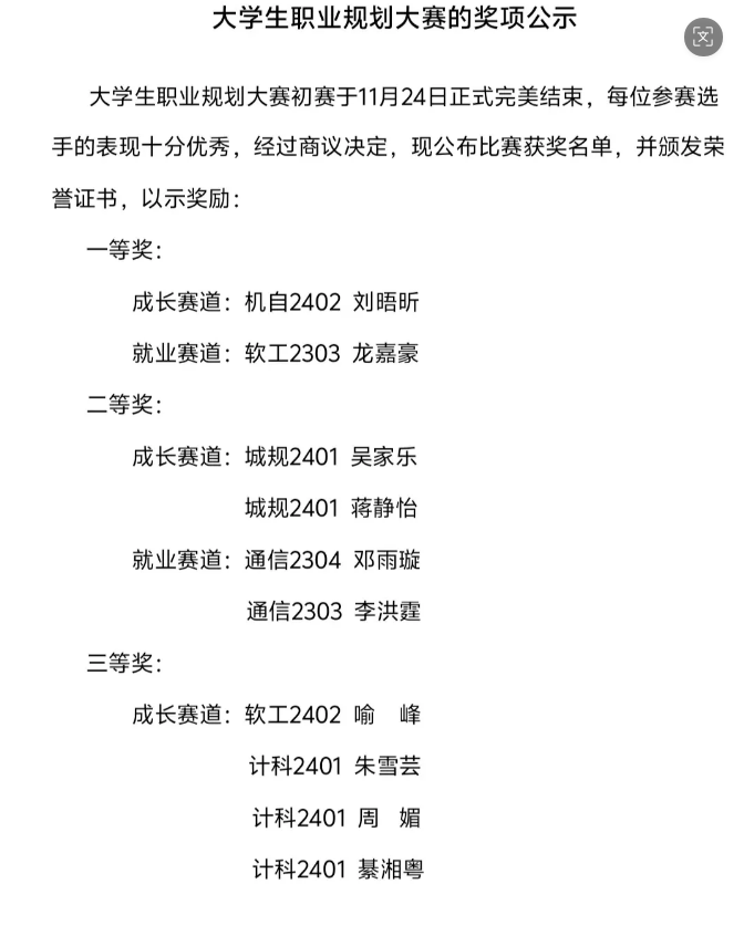 为强化学生职业规划意识,引导我系学生树立正确的成才观、就业观和择业观,科学合理规划学业与职业发展,11月24日中午12:30,我系在T3-D101教室顺利举办2025年大学生职业规划大赛。