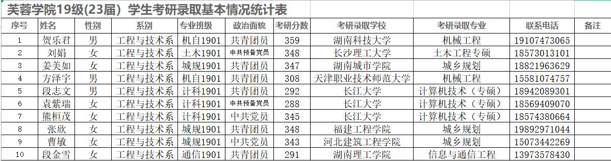 喜报:工程与技术系19级研究生录取情况